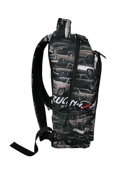 Designed with two side pockets for drinks or umbrellas and multiple compartments for effortless organization, it includes a dedicated padded laptop pocket inside—perfect for school, work, or travel. Whether you’re hitting a meet, heading to class, or working in the garage, this backpack blends function with street-tuned aesthetics.